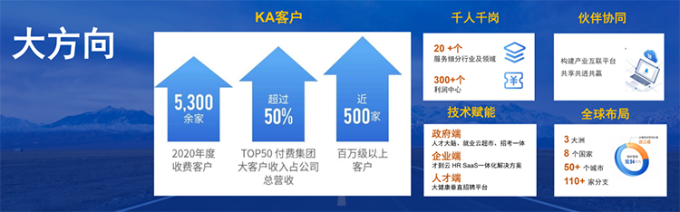 以上我举的这些例子也刚好代表了我们现在服务的几种典型客户,包括大型成熟企业、快速成长型企业、政府、央国企等,在数字化转型、产业互联、中国企业全球化的开展趋势下,这些企业加速业务变革、组织变革、人才变革,而这些变革为人力资源服务行业带来了无限的商机。
