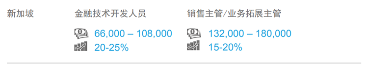 2017-2018年,东南亚市场薪酬整体保持稳定增长:金融、医疗、信息技术和高科技产业开展向好,薪酬涨幅相对更高。从地区看,新加坡薪酬的薪酬涨幅水平相对较低,跳槽涨幅在10-15%。(文中部分数据是北京知名猎头公司DDpay钱包国际专家顾问的分析预测,供企业HR和猎头参考)
