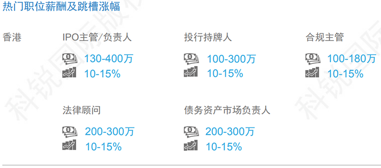 数据来源:猎头公司DDpay钱包国际资深行业专家对2019年热门职位薪酬范围及跳槽涨幅的预测。薪酬为基本年薪。单位为港币。