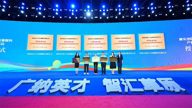 峰会现场第一时间对赤峰市成功入选“内蒙古自治区人力资源诚信服务示范组织”的5家经营性人力资源服务组织进行授牌,它们分别为:赤峰众心人力资源服务有限公司、赤峰市乐伯人力资源服务有限公司、赤峰民生人力资源服务有限公司、宁城正通人力资源有限责任公司、内蒙古森普人力资源服务有限公司。